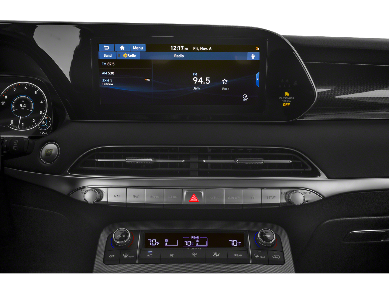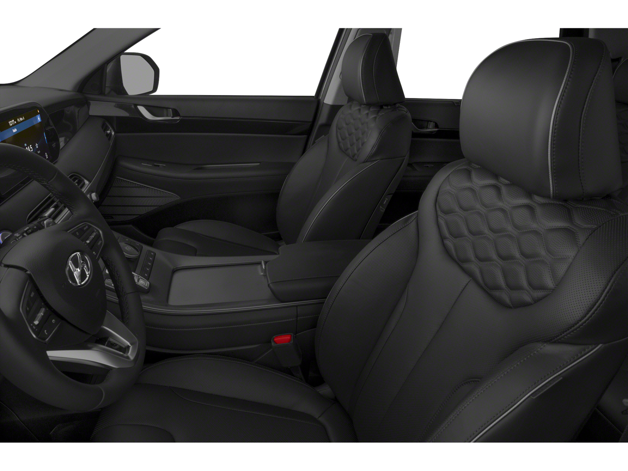 *ALUMINUM ALLOY WHEELS*, *APPLE CARPLAY/ANDROID AUTO*, *BACKUP CAMERA*, Americas Best Warranty 10yr/100k miles, Hyundai Roadside Assistance 5yr/Unlimited miles, 12 Speakers, 3.648 Axle Ratio, 3rd row seats: split-bench, 4-Wheel Disc Brakes, ABS brakes, Air Conditioning, Alloy wheels, AM/FM radio: SiriusXM, Apple CarPlay & Android Auto, Auto High-beam Headlights, Auto-dimming Rear-View mirror, Auto-leveling suspension, Automatic temperature control, Brake assist, Bumper Applique, Bumpers: body-color, Cargo Block, Cargo Cover/Screen, Cargo Net, Cargo Package, Cargo Tray, Carpeted Floor Mats, Compass, Delay-off headlights, Driver door bin, Driver vanity mirror, Dual front impact airbags, Dual front side impact airbags, Electronic Stability Control, Emergency communication system: Blue Link Connected Car Service (3-year complimentary subscription), First Aid Kit, Four wheel independent suspension, Front anti-roll bar, Front Bucket Seats, Front Center Armrest, Front dual zone A/C, Front reading lights, Fully automatic headlights, Garage door transmitter: HomeLink, harman/kardon® Speakers, Heads-Up Display, Heated & Ventilated Front Bucket Seats, Heated door mirrors, Heated front seats, Heated rear seats, Heated steering wheel, Illuminated entry, Knee airbag, Low tire pressure warning, Memory seat, Mudguards, Navigation System, Occupant sensing airbag, Option Group 01, Outside temperature display, Overhead airbag, Overhead console, Panic alarm, Passenger door bin, Passenger vanity mirror, Power door mirrors, Power driver seat, Power Liftgate, Power moonroof, Power passenger seat, Power steering, Power windows, Premium Nappa Leather Seat Trim, Radio data system, Radio: AM/FM/MP3 Premium Audio System, Rain sensing wipers, Rear air conditioning, Rear anti-roll bar, Rear audio controls, Rear reading lights, Rear window defroster, Rear window wiper, Reclining 3rd row seat, Remote keyless entry, Security system, Speed control, Speed-sensing steering, Split folding rear seat, Spoiler, Steering wheel mounted audio controls, Tachometer, Telescoping steering wheel, Tilt steering wheel, Traction control, Trip computer, Turn signal indicator mirrors, Variably intermittent wipers, Ventilated front seats, Ventilated rear seats, Wheels: 20" x 7.5J Split 5-Spoke Machined Alloy.